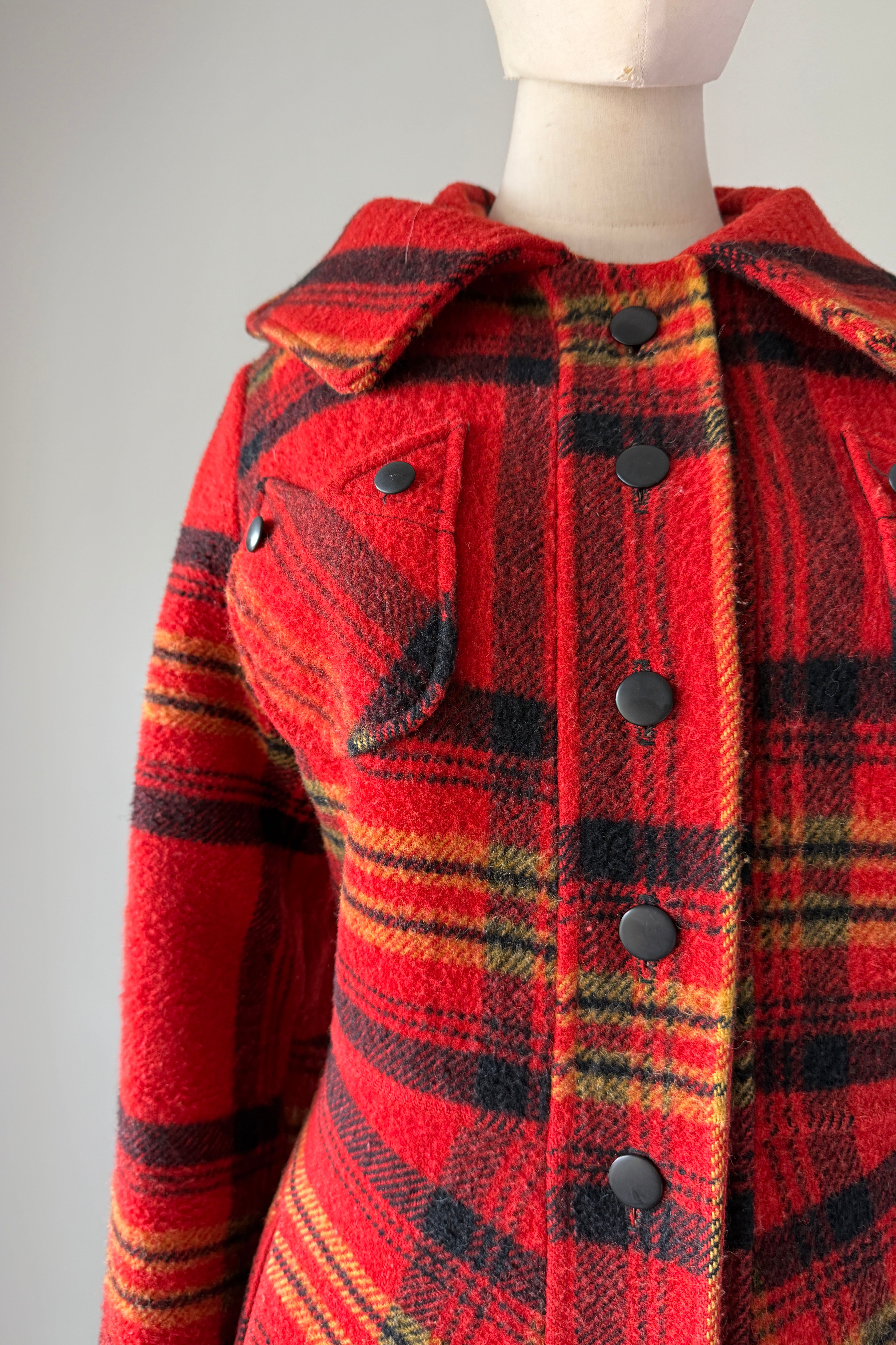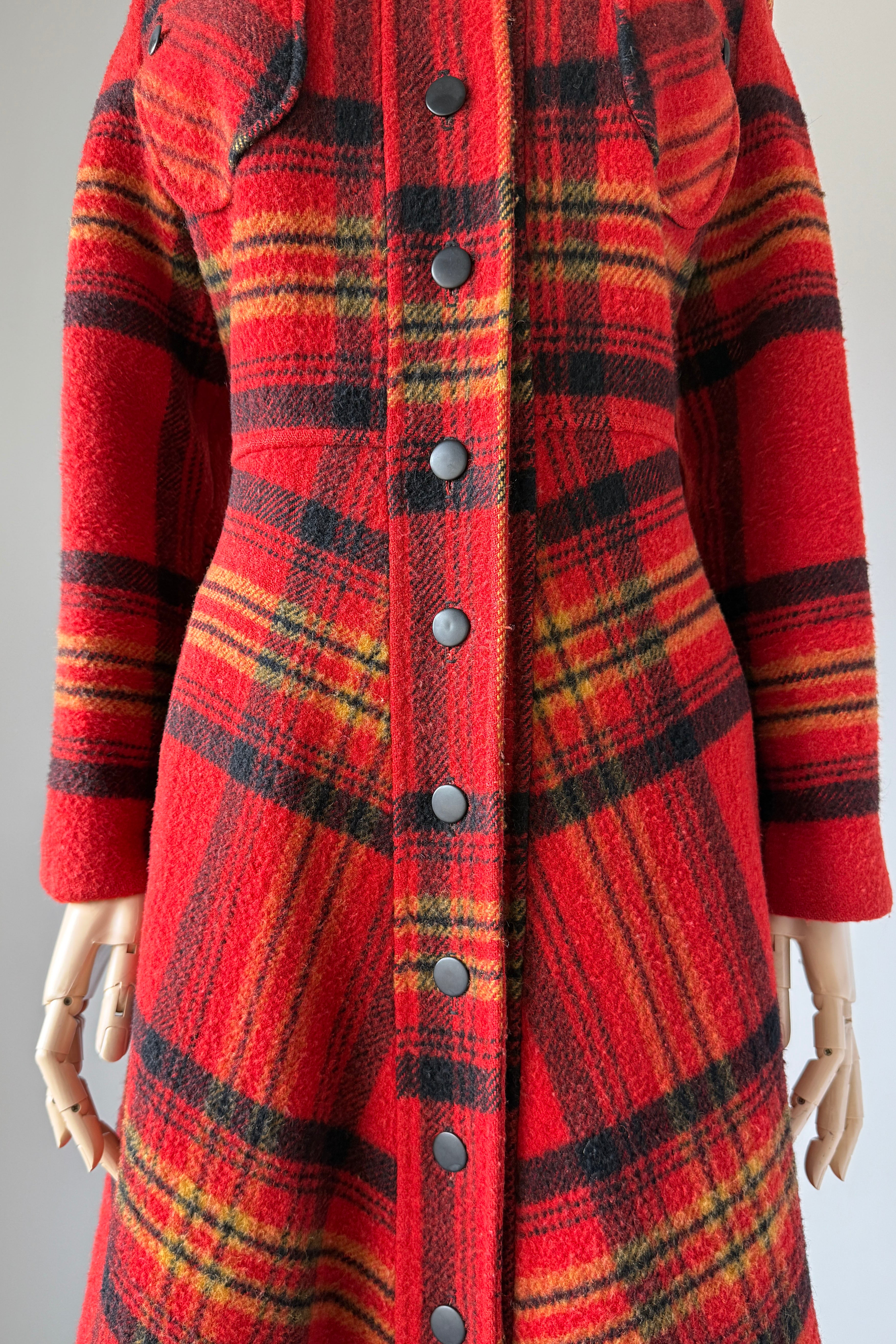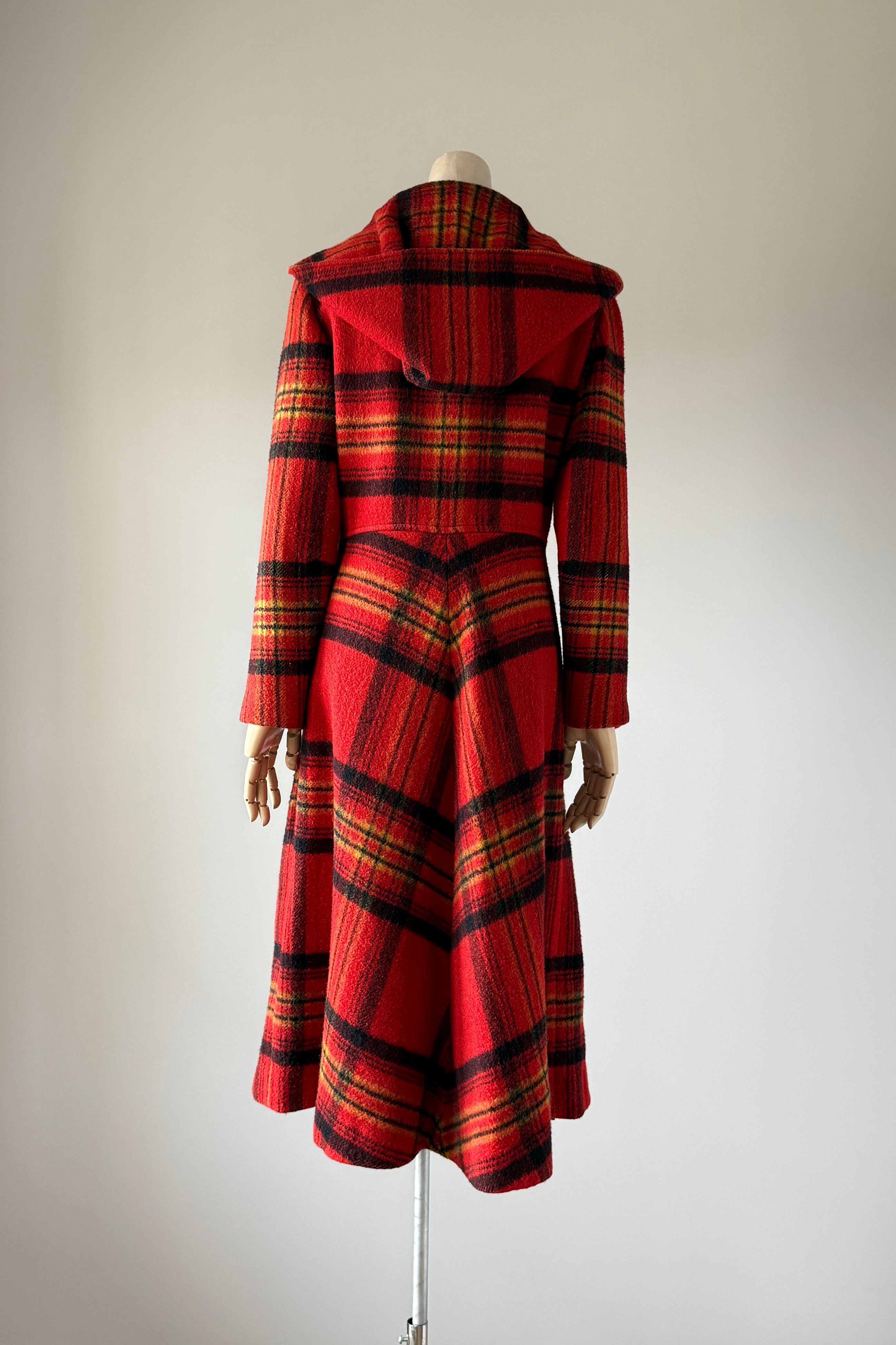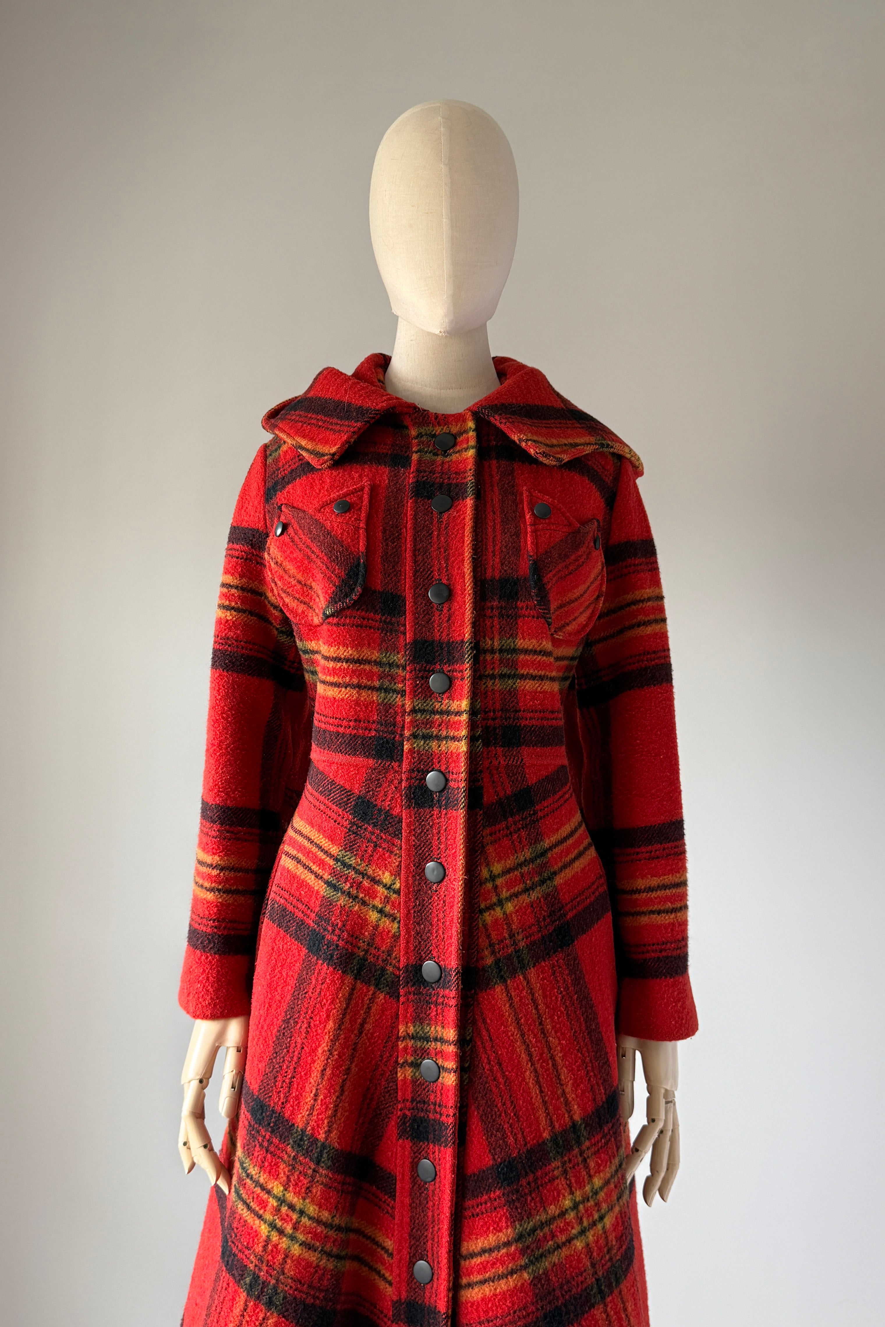 VINTAGE HOODED WOOL COAT1970s red wool coat by American Bazaar. Oversized cozy hood, button front closure, besom pockets and little tulip breast pockets. Acetate lining.Excellent condition. Fits like S/MLength 43.5Bodice 15Shoulders 16Sleeves 21Bust 38-40Waist 32As with all vintage, please expect wear consistent with age. All sales are final. No order cancellations.0739 | 2548