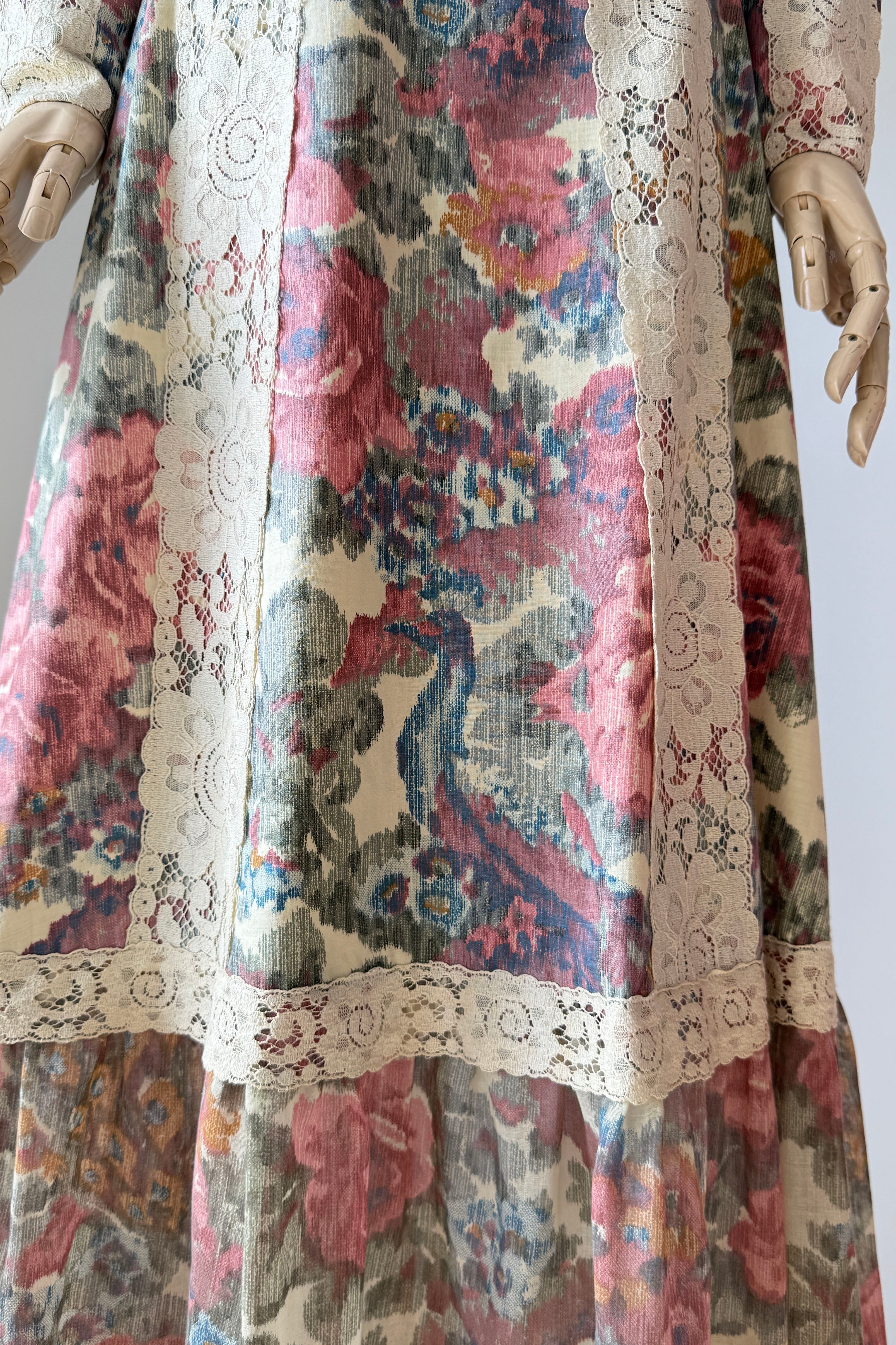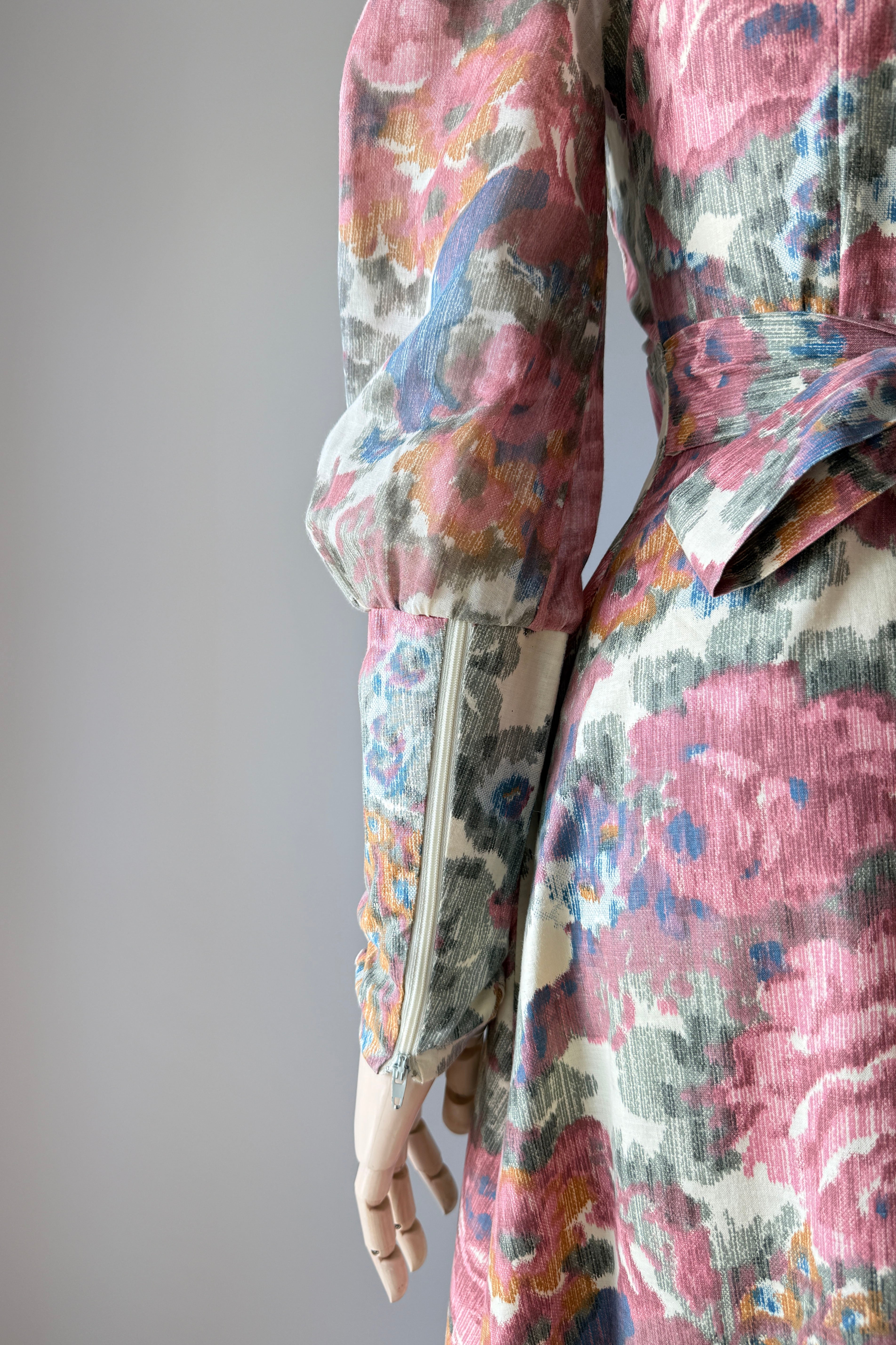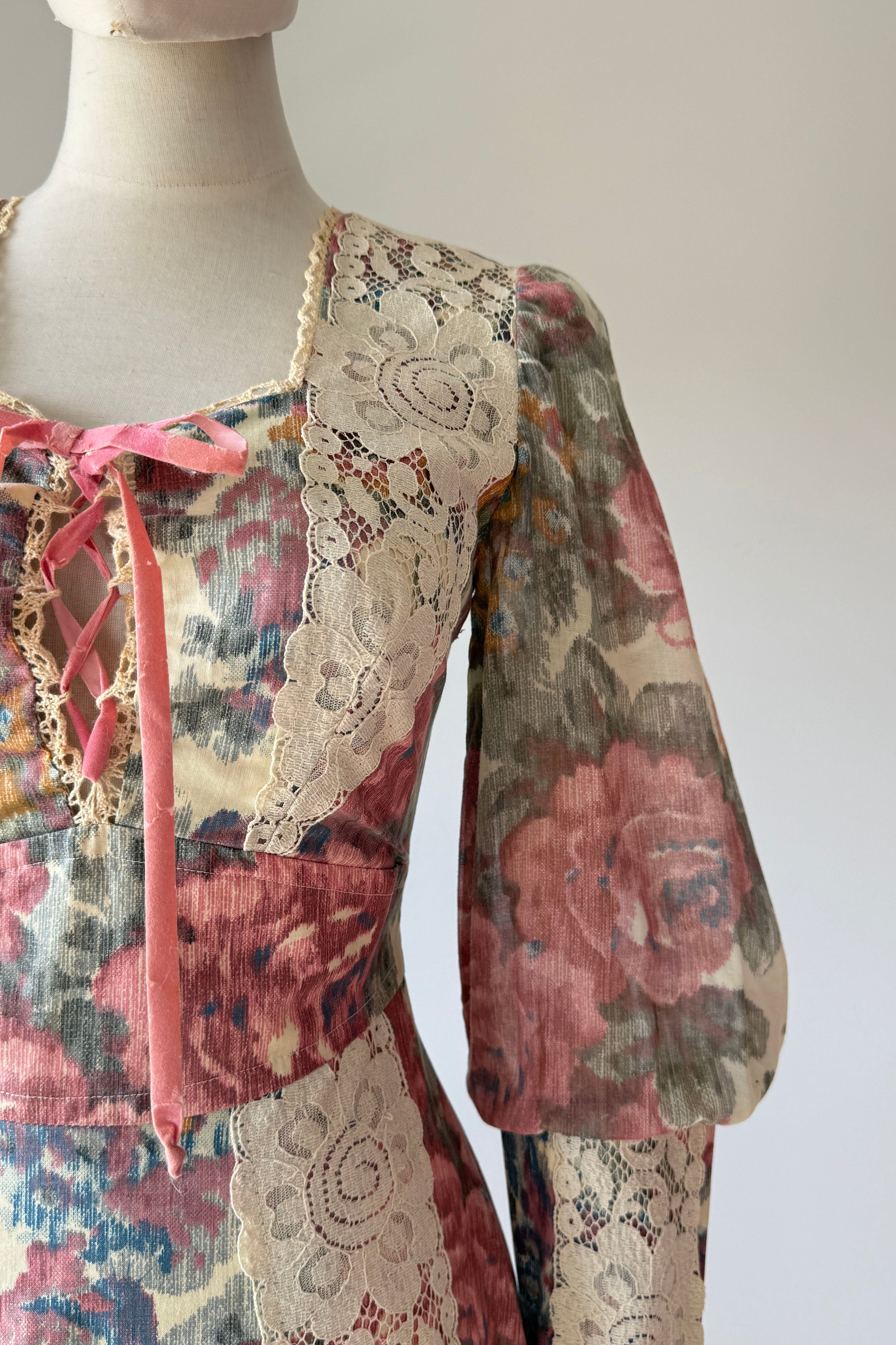 VINTAGE DRESS Vintage 1970s dress. Features romantic rose print, dramatic juliet sleeves, empire waist, self belt, zippers at back and cuffs. Cotton. By Vicky Vaughn. Excellent condition. Velvet tie shows wear.Fits like XS/S.Length 55Bodice 15Bust 34Waist 26Hip 38As with all vintage, please expect wear consistent with age. All sales are final. No order cancellations.0981 | 2615