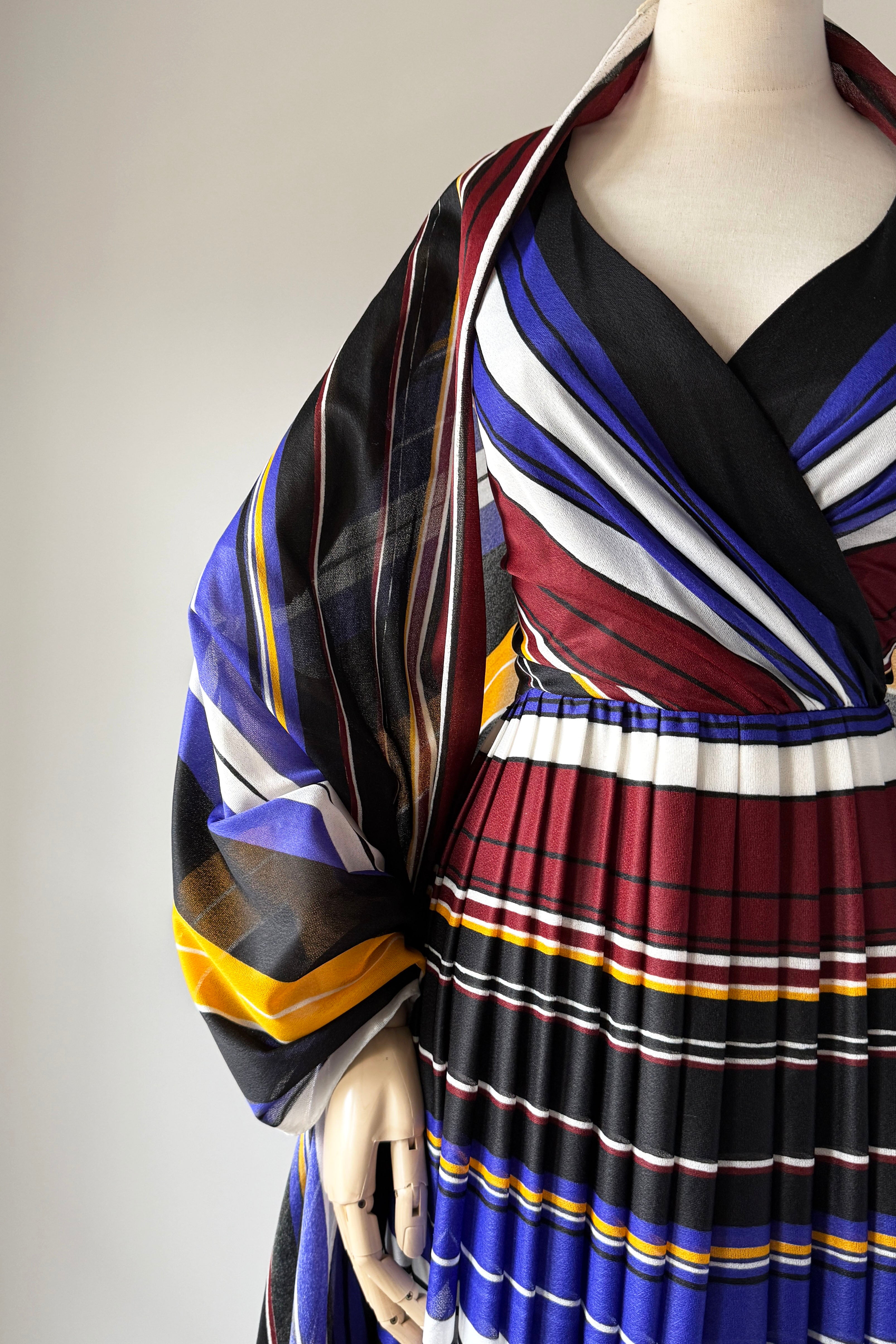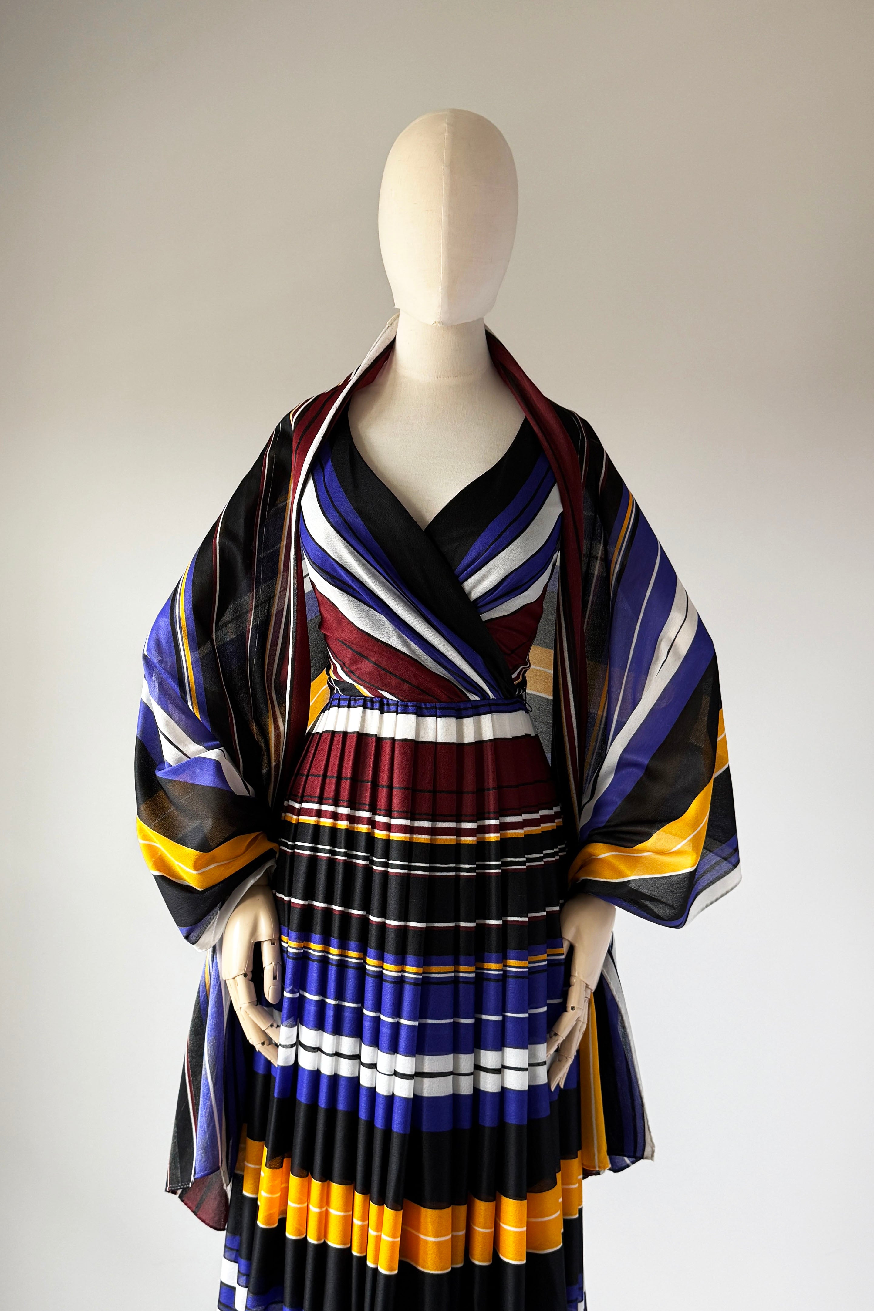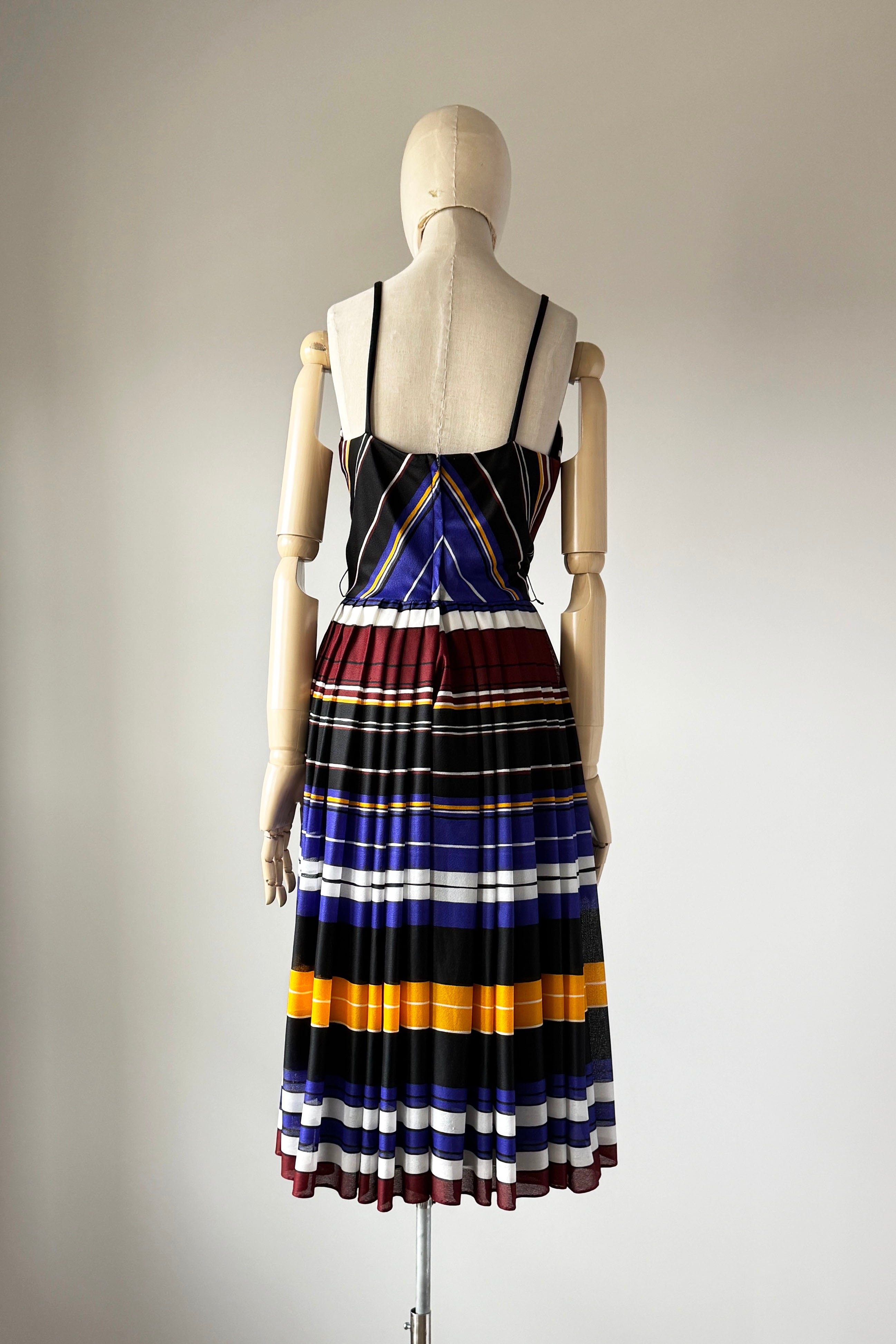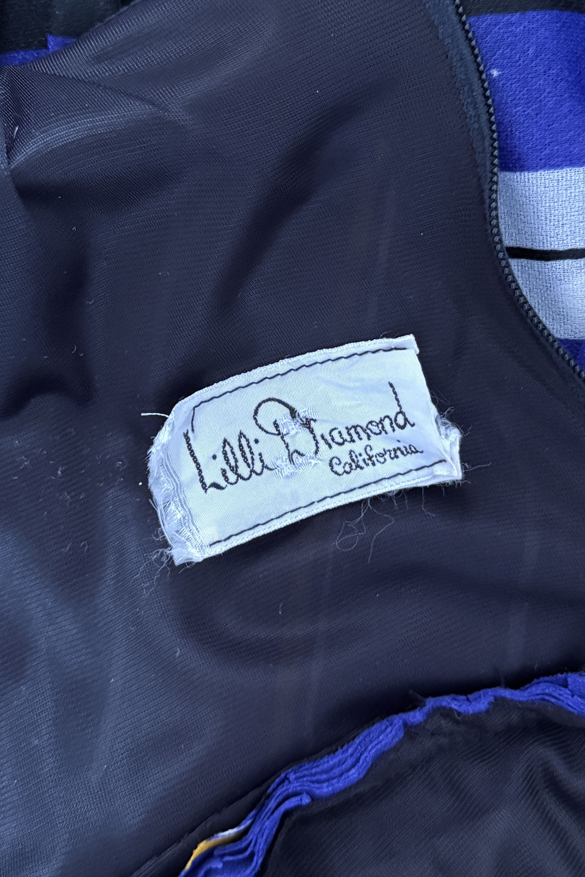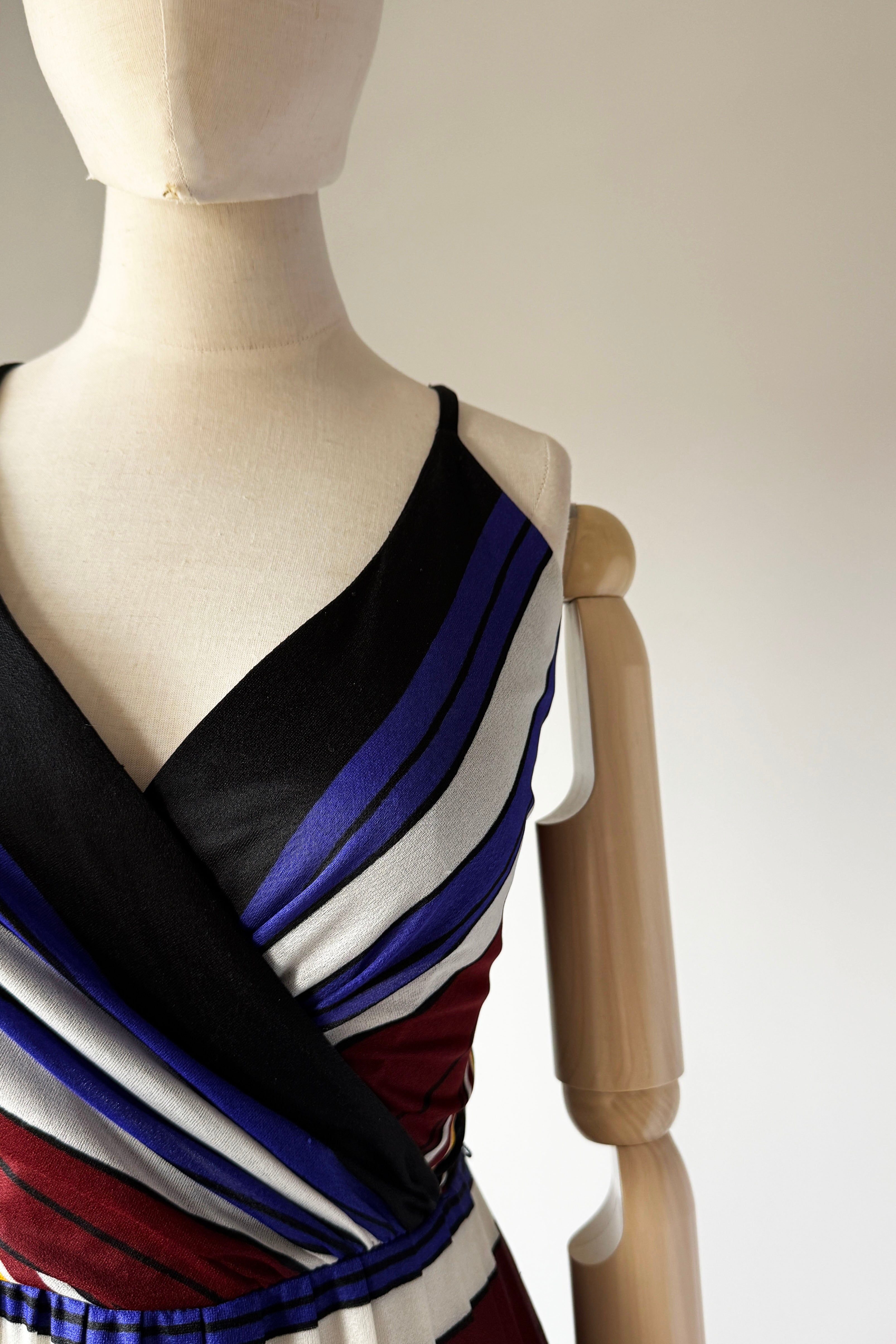 VINTAGE DRESSVintage 1970s dress. Features striped heavy poly with wide sash belt can also be worn as wrap, poly lining, back zipper. By Lilli Diamond.Excellent condition. XS/S. Length 43Bodice 17Bust 36Waist 26As with all vintage, please expect wear consistent with age. All sales are final. No order cancellations.0891 | 2609