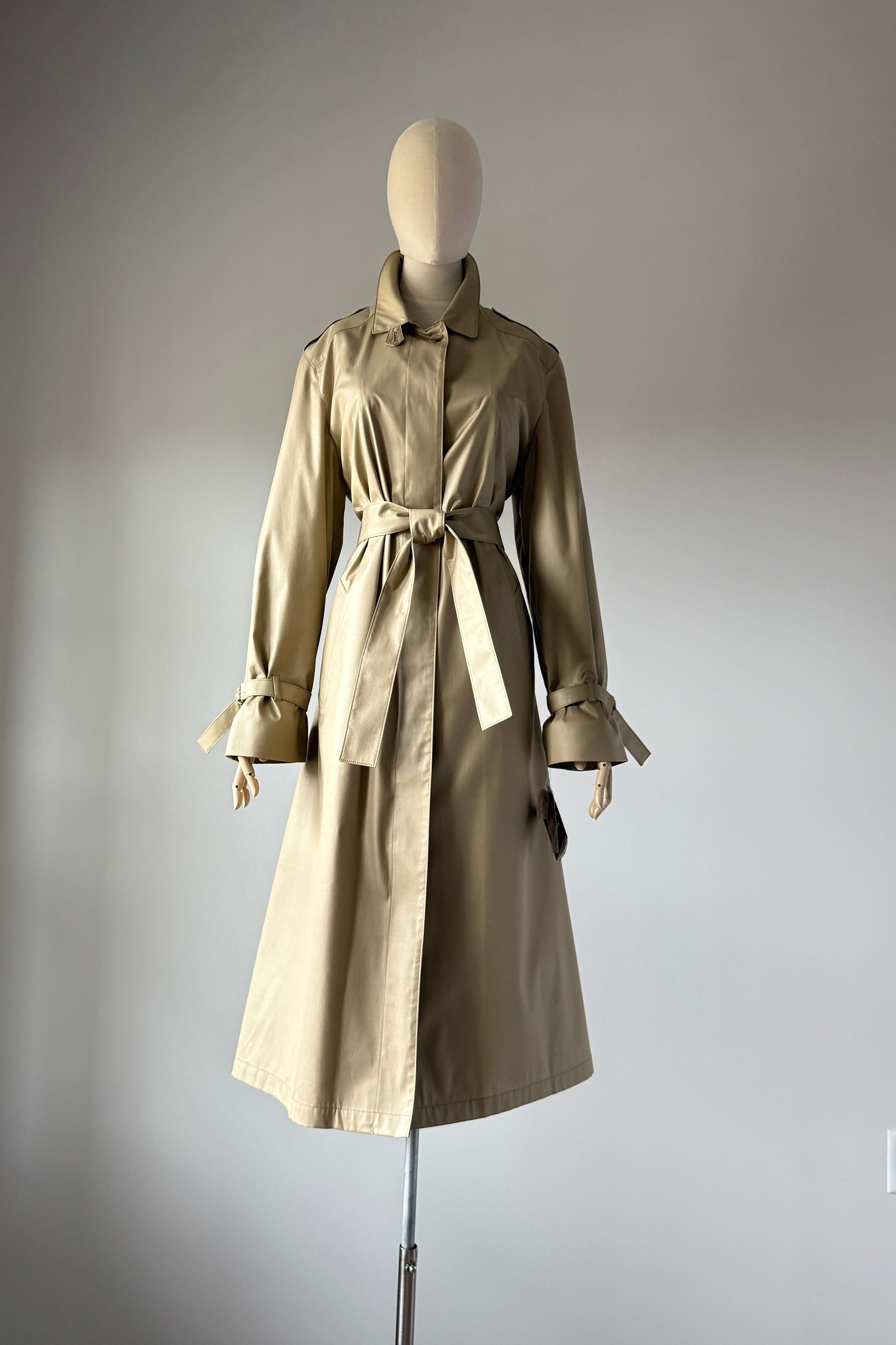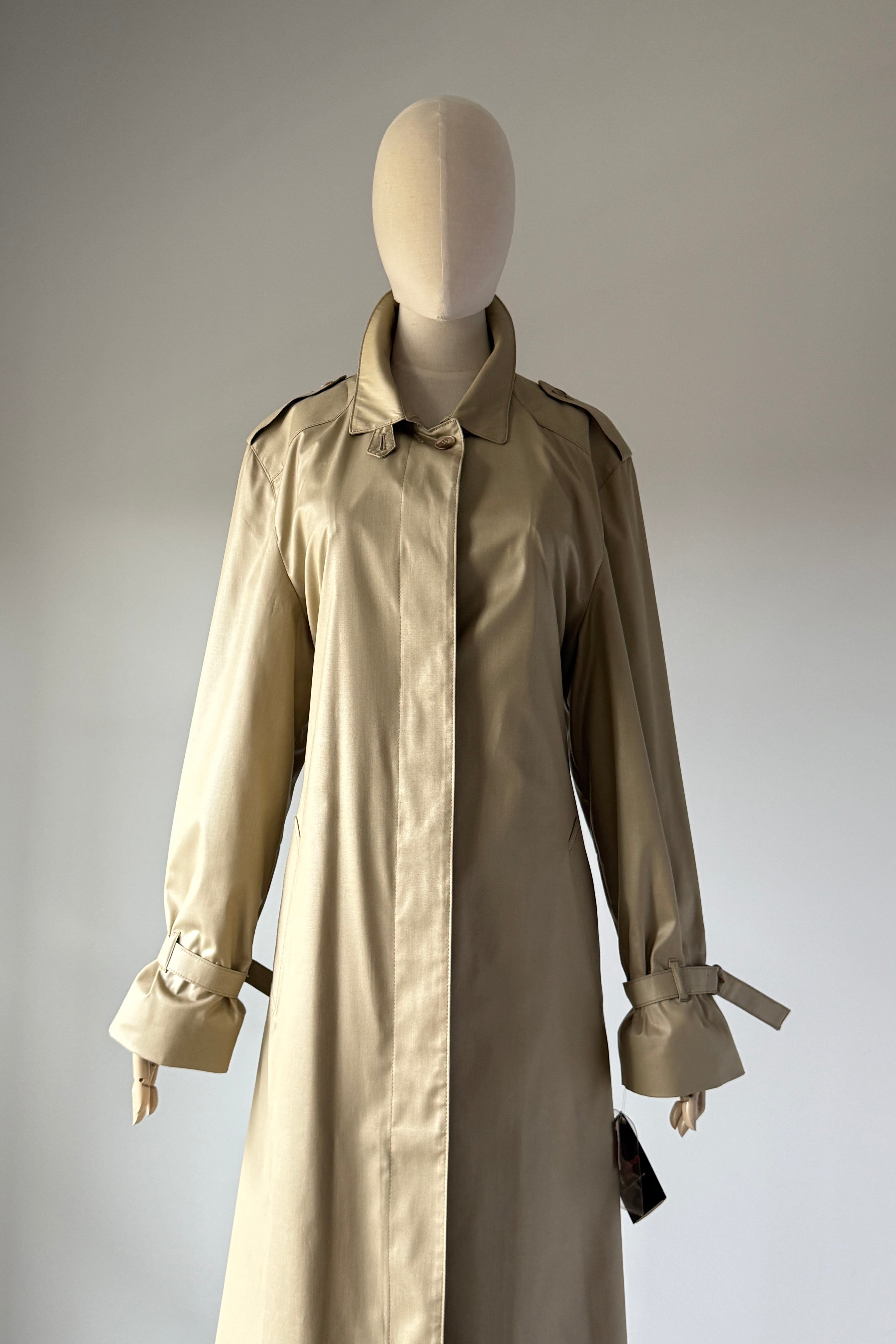 VINTAGE LONDON FOGQuintessential 1980s vintage London Fog trench coat. Dead stock with original tags - never worn. Rain + stain protected "Zepel". 65 poly, 35 combed cotton, nylon lining. Excellent condition. Fits like LARGELength 46Shoulder 17Sleeve 24Bust 46Waist 46As with all vintage, please expect wear consistent with age. All sales are final. No order cancellations.xxxx | 2544