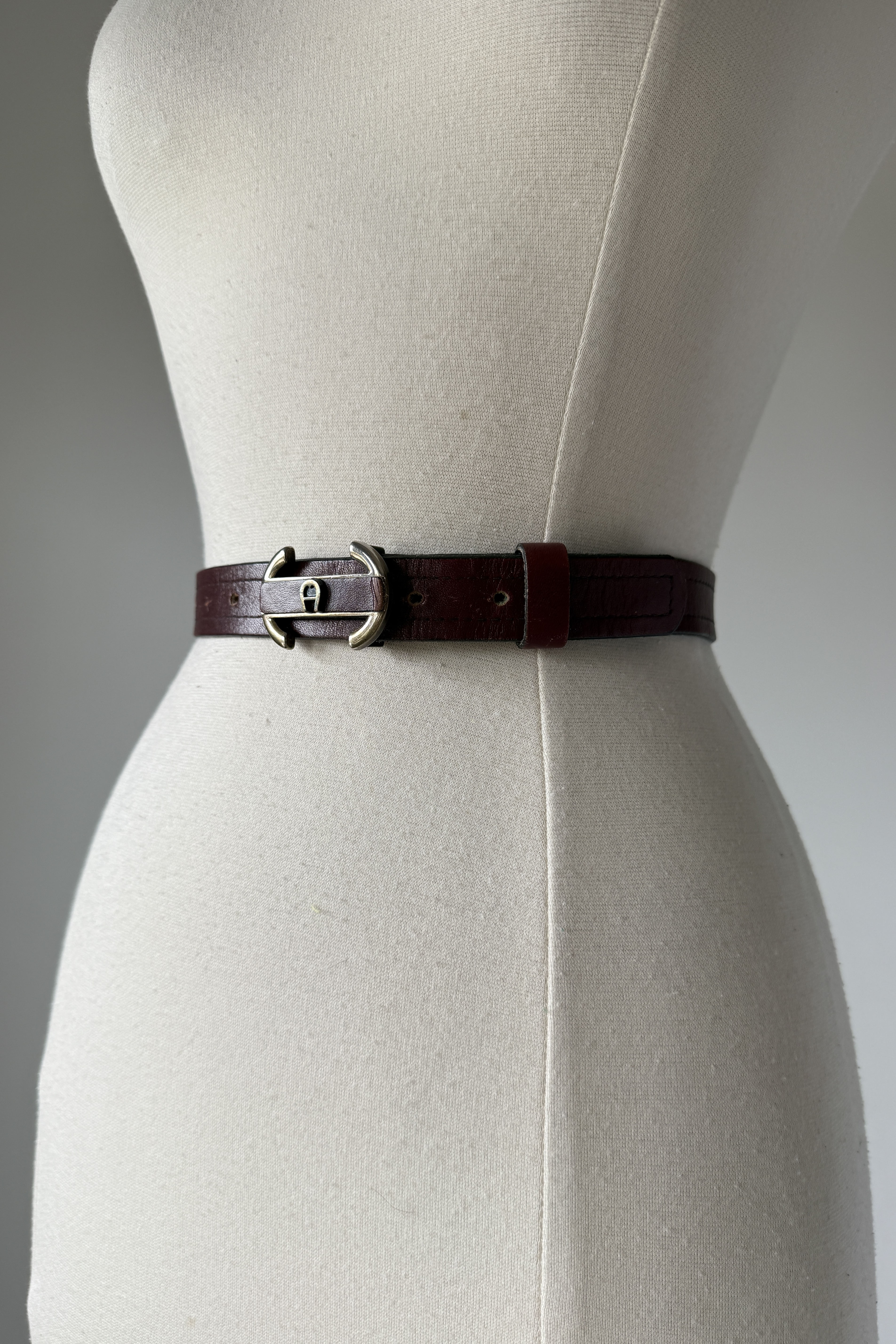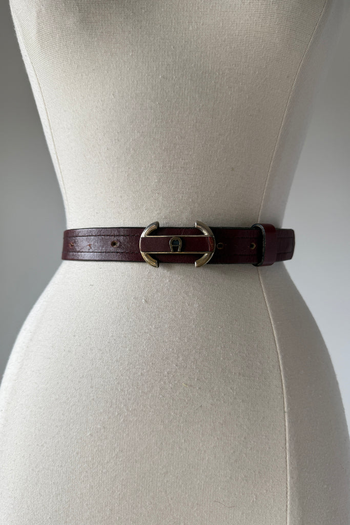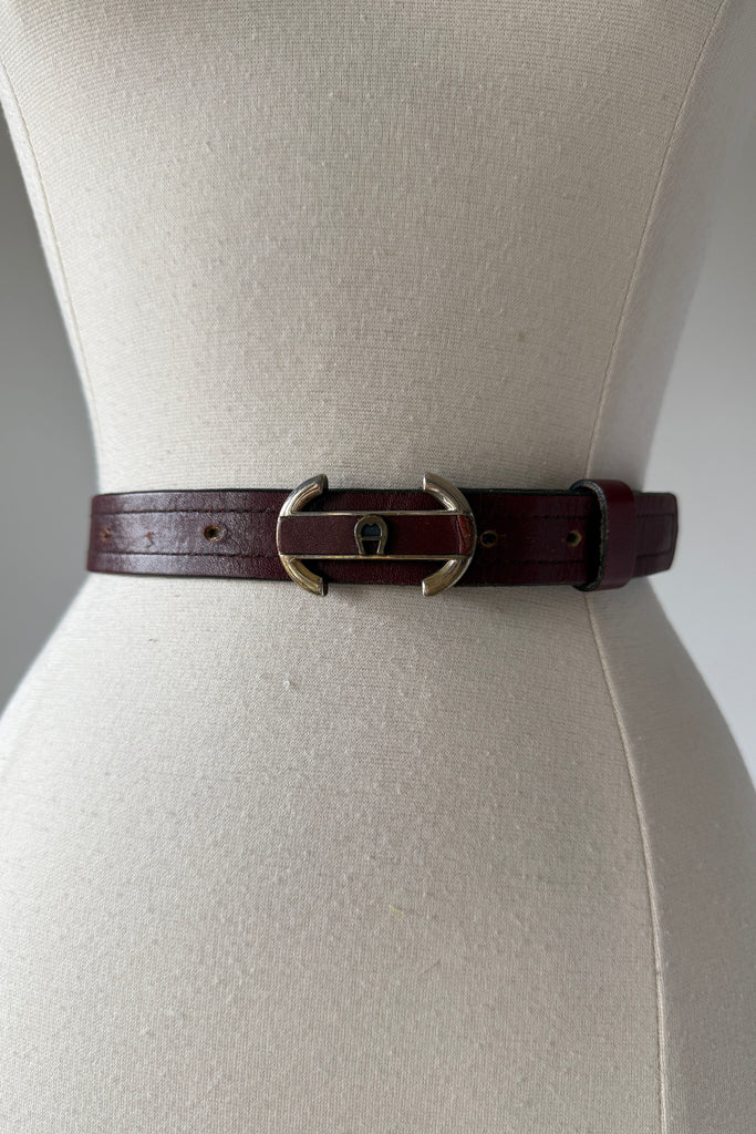 Claret leather with logo buckle. Condition: Excellent. As with all vintage, please expect wear consistent with age.Measurements:27-33