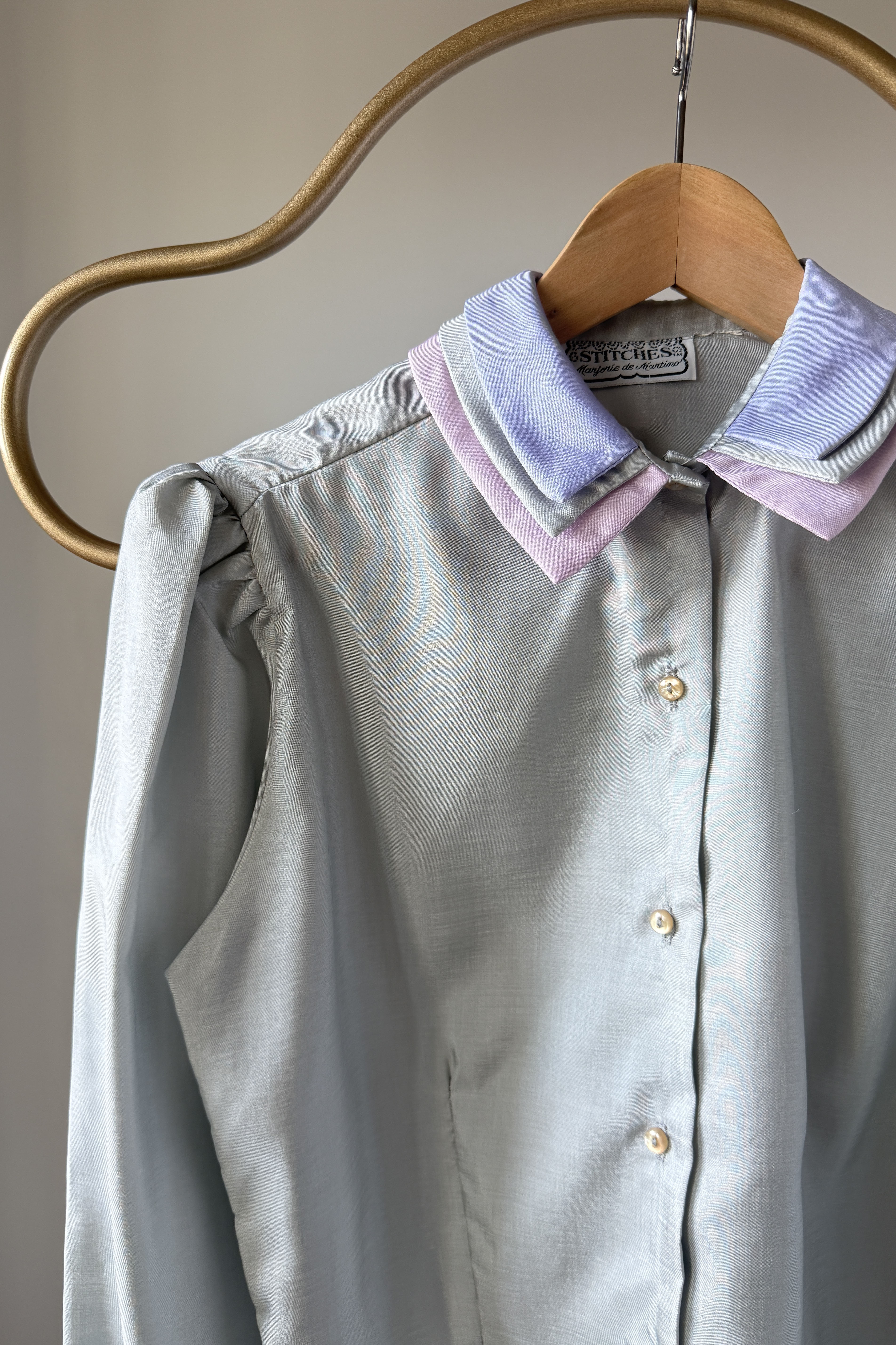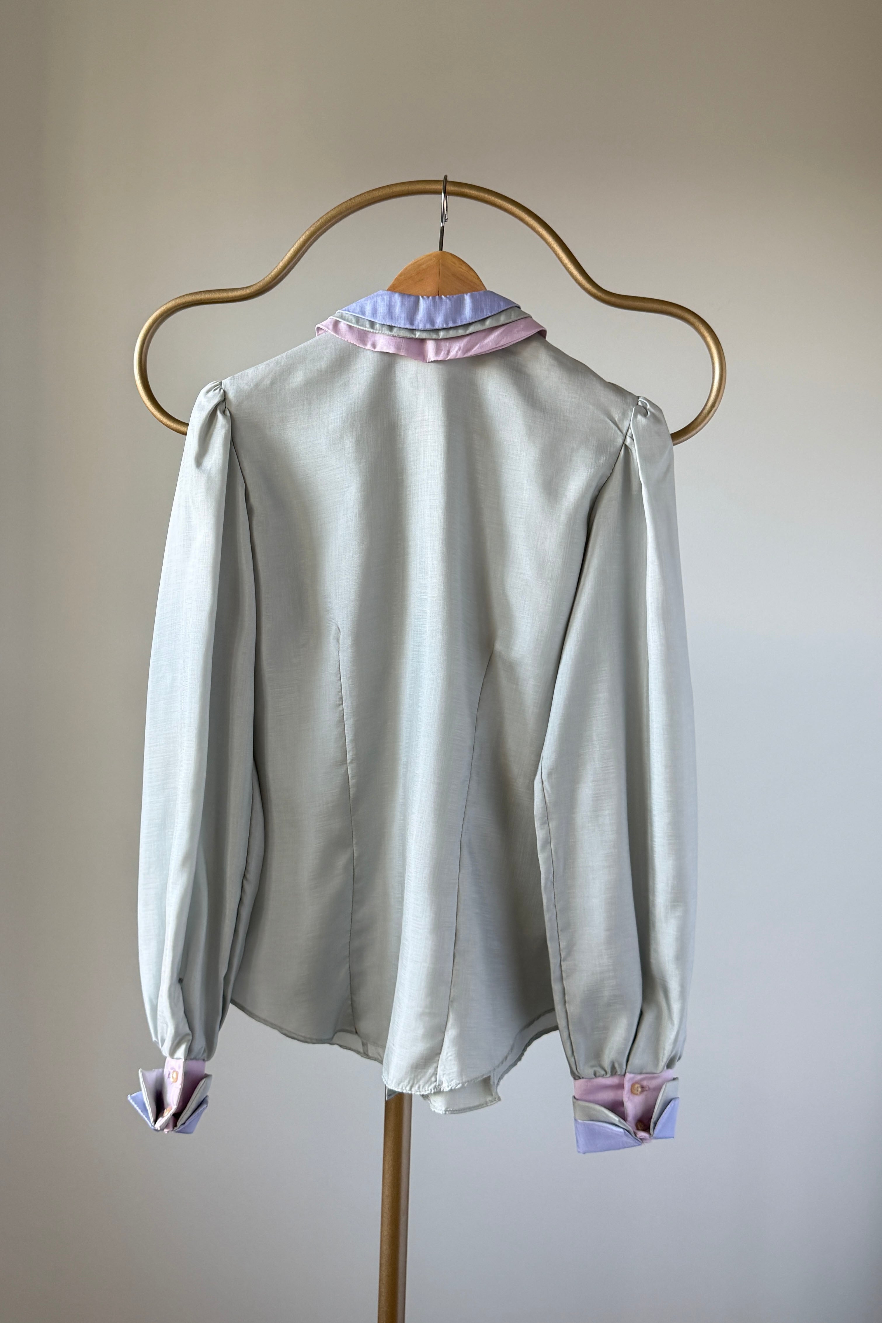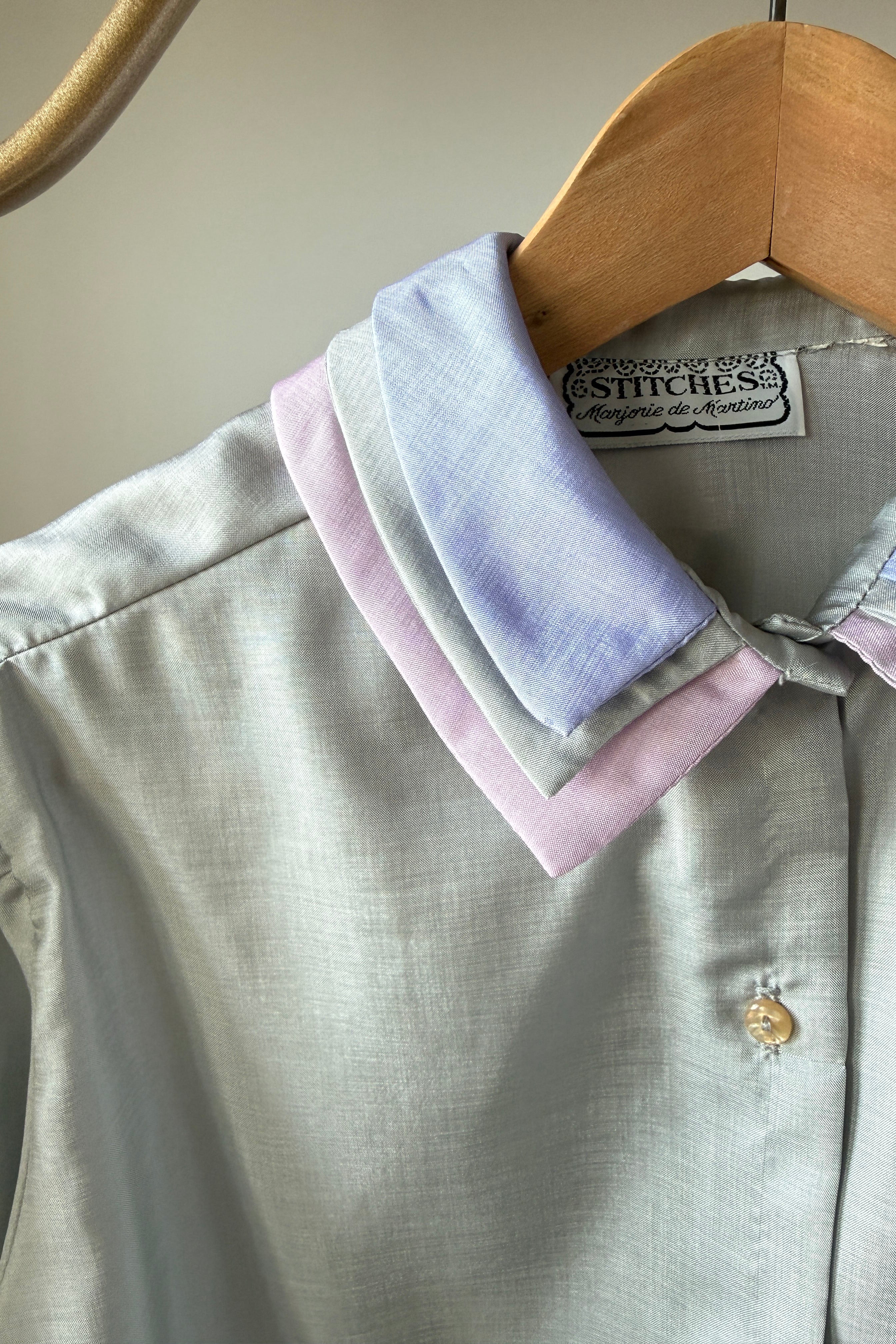 VINTAGE BLOUSEVintage 1980s triple collar bow tie blouse. Dead stock with tags. Poly. By Stitches by Marjorie de Martino.Excellent condition. Fits like s/m.Length 27Shoulder 15Sleeve 26Bust 39As with all vintage, please expect wear consistent with age. All sales are final. No order cancellations.0793 | 2603